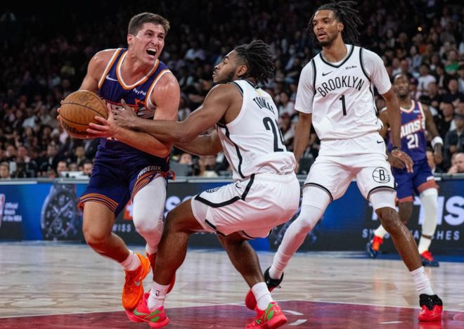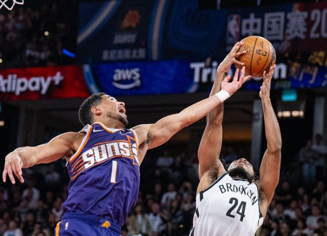 北京时间10月12日,NBA季前赛中国站,布鲁克林篮网对阵菲尼克斯太阳队。上一场太阳队132-127加时逆转取胜,士气正劲。不过,近几个赛季的太阳队却让人难以评价,从一支打进总决赛的争冠球队,先后送走了布里奇斯、艾顿、保罗等核心之后,今夏再拆散三巨头(交易走杜兰特、买断比尔),一步步变成了西部鱼腩球队,管理层的的迷之操作确实让人摸不着头脑。新赛季唯一可以期待一点的就是,新加盟球队的杰伦-格林和布克将会磨出怎样的火花?